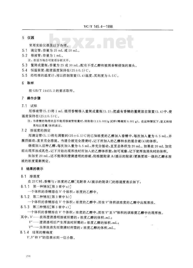 - YC/T 145.4-1998 烟用香精乙醇中溶混度的评估