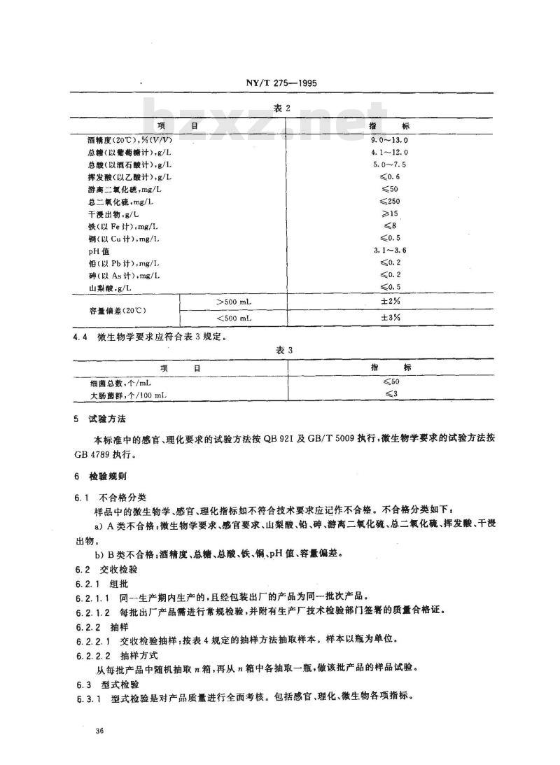 - NY/T 275-1995 绿色食品半干白葡萄酒