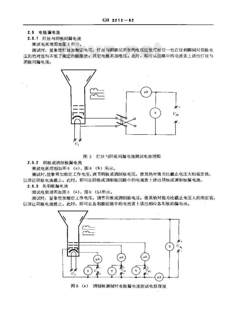 在规定工作条件下,流经各阳极回路和阴极回路的电流分别称为各阳极电流和阴极电流,到达荧光屏上的电了束电流称为束电流。2.6.1.2测试方法