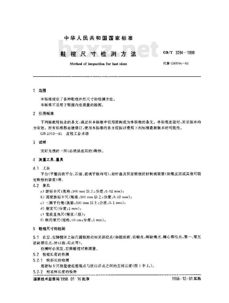 - GB/T 3294-1998 鞋楦尺寸检测方法