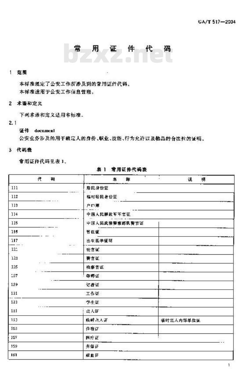 本标准规定了公安工作所涉及到的常用证件化码。本标准适用于公安工作信息管理,2术循和定义