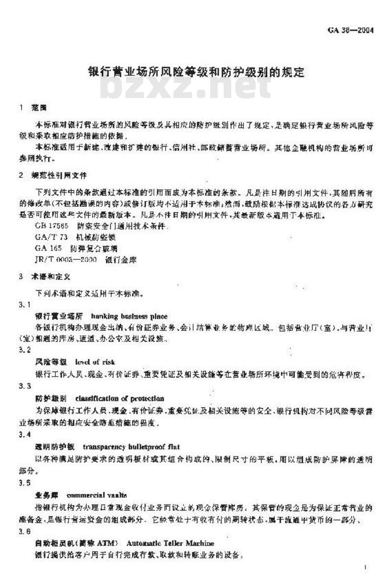 - GA 38-2004 银行营业场所风险等级和防护级别的规定