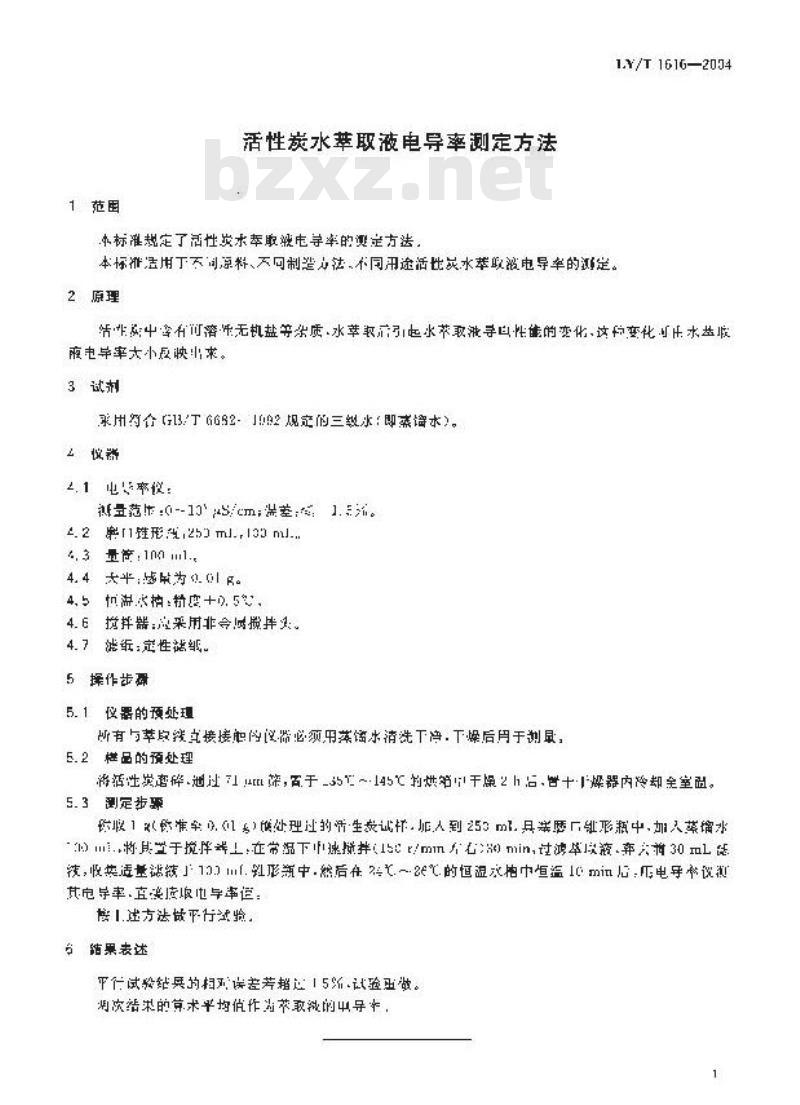 活性炭水萃取液电导率谢定方法本标准规定了活性炭求率取获电导率的测定方法,1.Y/T 1616—2094