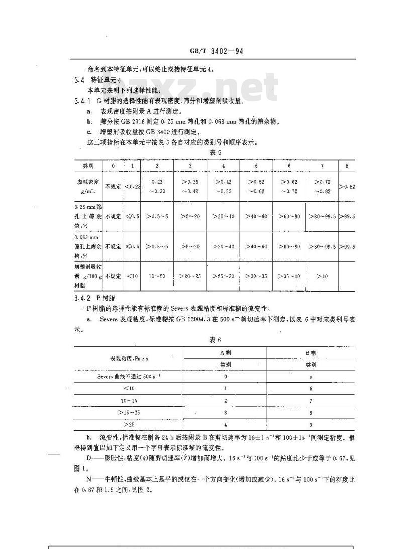 3.3.1G树脂的主要性能为粘数。粘数按GB3401测定,在本单元中以测定值在表2中对应的类别号或标称值表示。