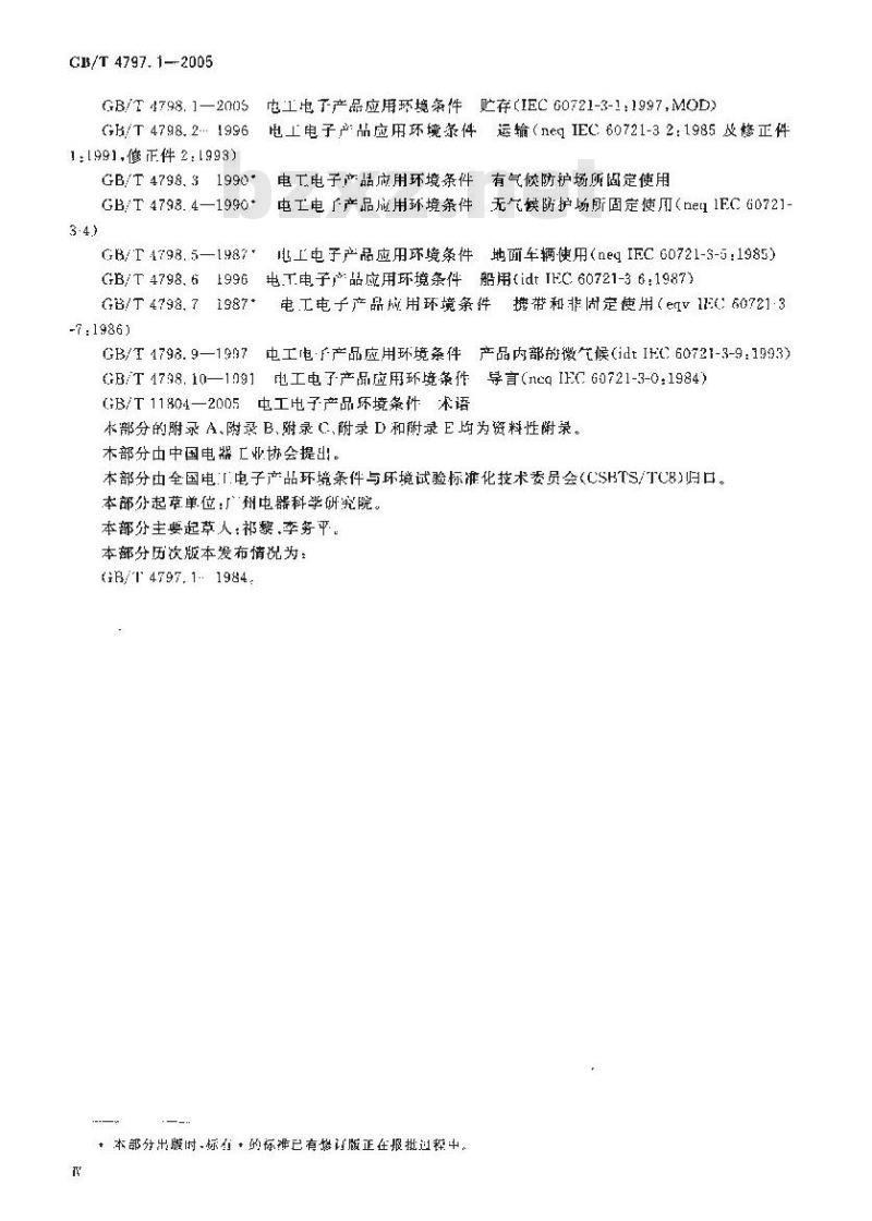 本部分为GB/14797的第1部分,和部分修改采用IEC60721-2-1:2002坏境条件分类第2-】部分:白然环境条件——温度利混度”本部分根据1FC:60721-2-1:2002重新起草,在附录F中列出了不部分章条编号与IEC60721-2-1:2002章条编号对照一览表、