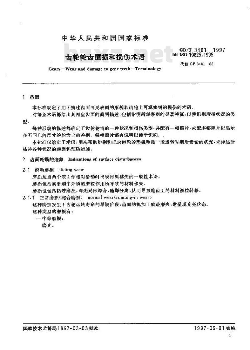 -Wear and damage to gear teeth-TermlnologyGB/T 3481—1997