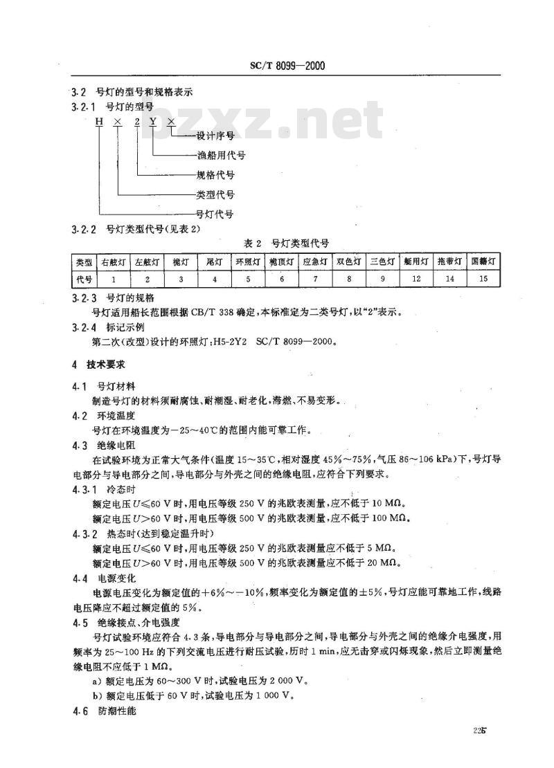 下列标准所包含的条文,通过在本标准中引用而构成为本标准的条文。本标准出版时,所示版本均为有效。所有标准都会被修订,使用本标准的各方应探讨使用下列标准最新版本的可能性。CB/T338—1999船用电气号灯类型、参数和主要尺寸SC/T7002.10—1991船用电子设备环境试验条件和方法外壳防护3号灯的类型和规格