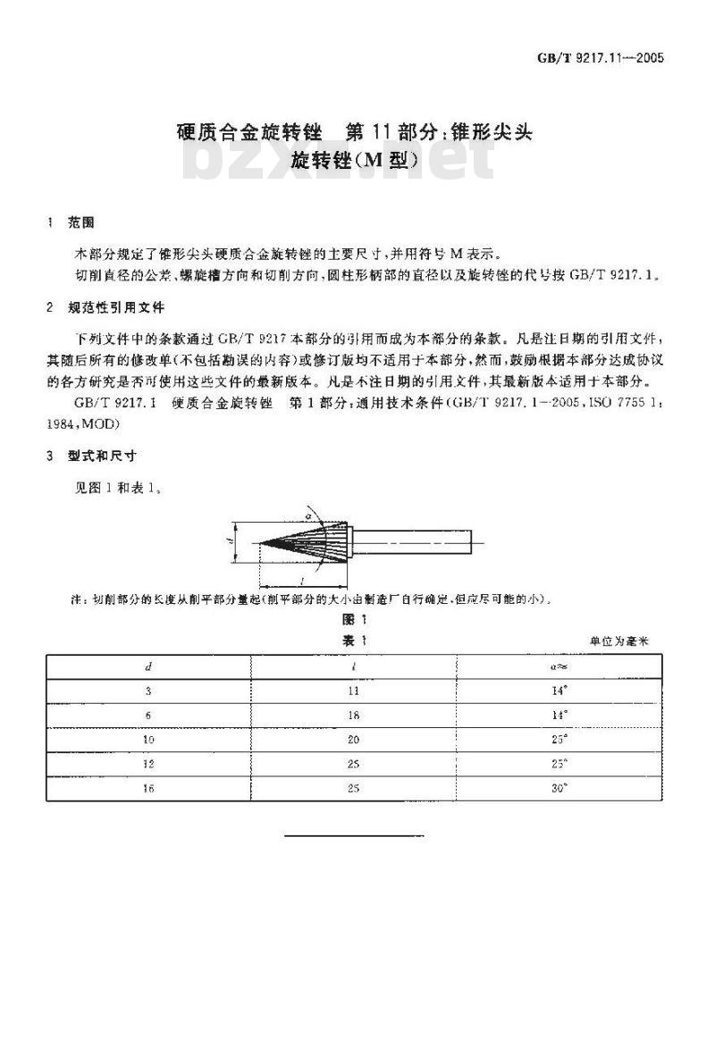 - GB/T 9217.11-2005 硬质合金旋转锉 第11部分:锥形尖头旋转锉(M型)