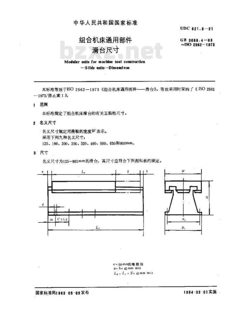 - GB/T 3668.4-1983 组合机床通用部件 滑台尺寸