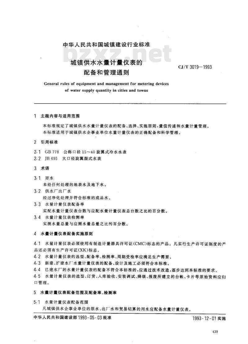 - CJ/T 3019-1993 城镇供水水量计量仪表的配备和管理通则