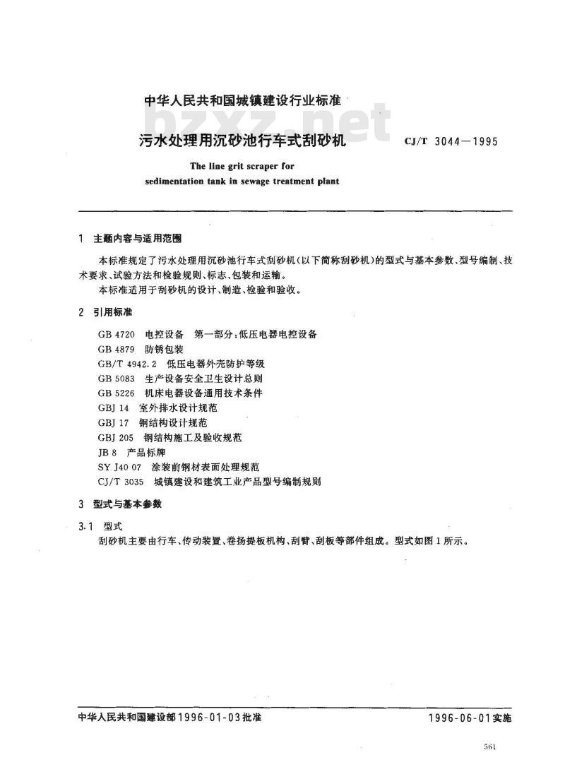 - CJ/T 3044-1995 污水处理用沉砂池行车式刮砂机