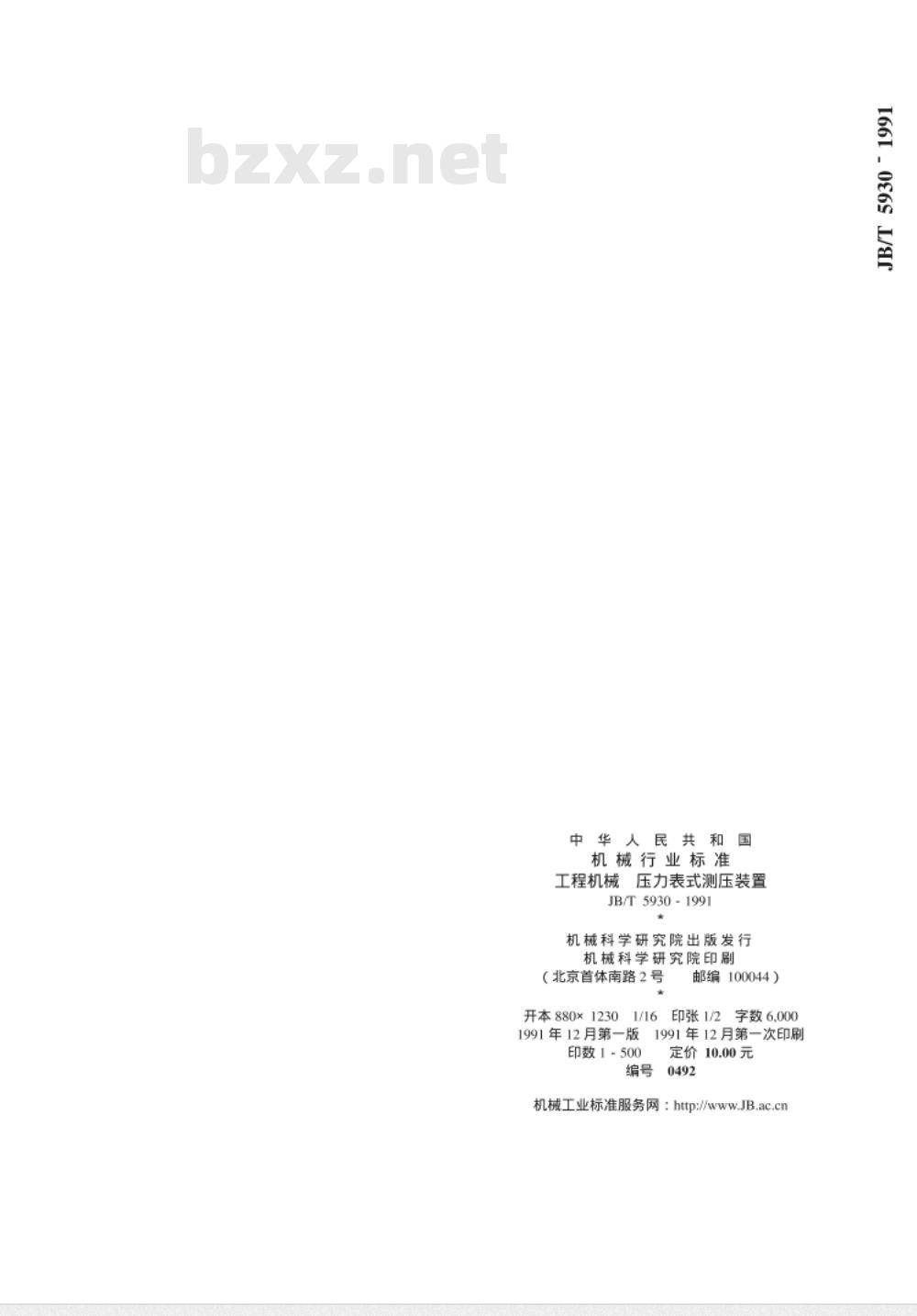 - JB/T 5930-1991 工程机械 压力表式测压装置