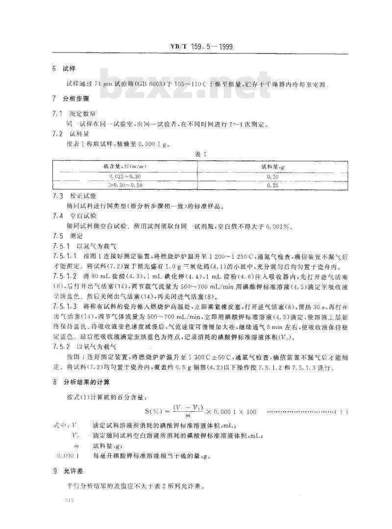 - YB/T 159.5-1999 钛精矿(岩矿)化学分析方法 燃烧碘量法测定硫含量