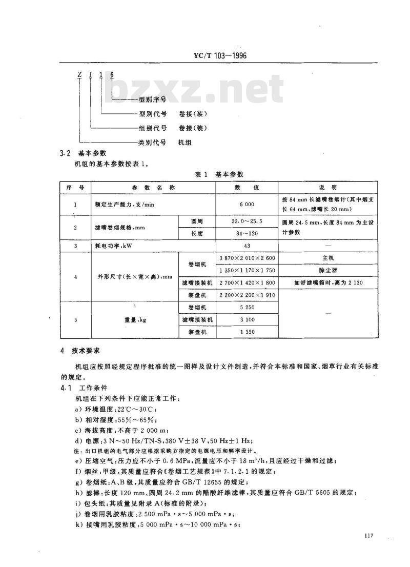 - YC/T 103-1996 烟草机械 ZJ16型卷接机组