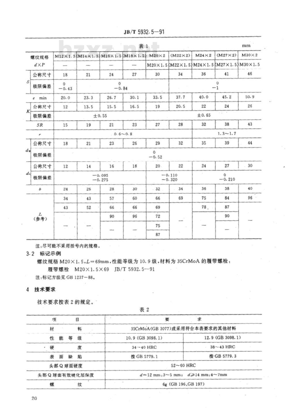 本标准规定了螺纹规格为M12×1.5~M30×2的履带式推土机用履带螺栓的尺寸和技术要求。本标准适用于JB/T5932.1的组合式密封履带。其他工程机械的履带螺栓可参照使用本标准。2引用标准