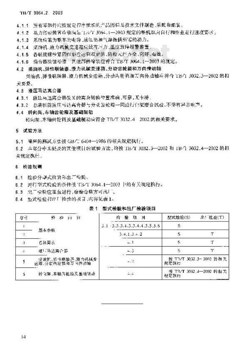 4.1.1所有零剂件成报规定保序批准作品图性及技术文伴制造、采购和组装4.1.2动传动装应能满1/3064.1—2们3规定的整机双行和作业是行速变求4.1.3系统成船为格车的电总,液[染相气源链所店的动力4.1.4案讲机.微机械变速箱应设有力、温原故降报警装置4.1.5各联接螺整紧固剂应达到规定俏防检心性齐全究好,有效,4.1.6消音器涂银效漆其他部件案装应得合IB/F30G4,1一2003的规定,4.2柴油机、弹性联轴滑-湾力机减变速箱、分动齿轮和万向传动轴些油机,弹生联轴器、液力机械变注箱,分动以轮符和方向传动轴而符今1B/13032.3一2002的扫关费要