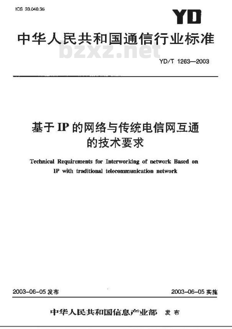 - YD/T 1263-2003 基于IP的网络与传统电信网互通的技术要求