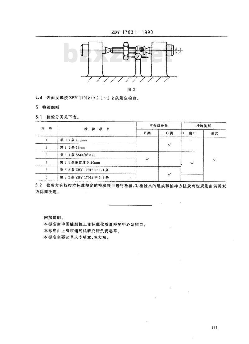 本标准由中国缝纫机工业标准化质量检测中心站妇口。本标准由上海市缝纫机研究所负责起草。本标准主要起擎人李明章、陈大东。163