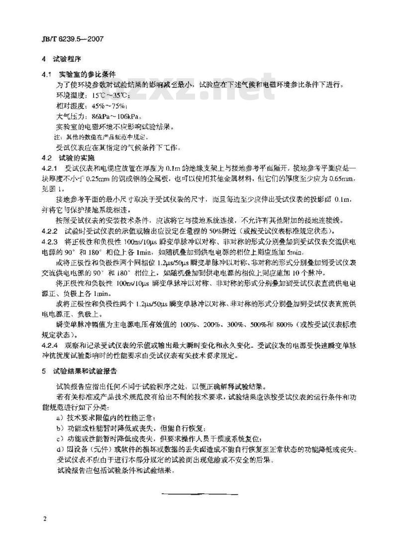 4.2.4观察利记录受试仪表的示值或输出最大瞬时变化和永久变化.受试仪表的电源受快速瞬变单脉冲抗扰度试验影响时的性能要求由受试仪表有关技术要求规定。5试验结果和试验报告