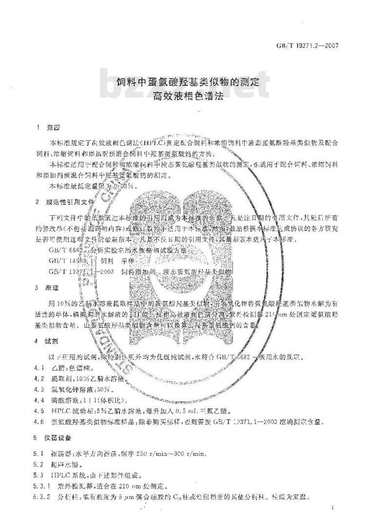 - GB/T 19371.2-2007 饲料中蛋氨酸羟基类似物的测定高效液相色谱法