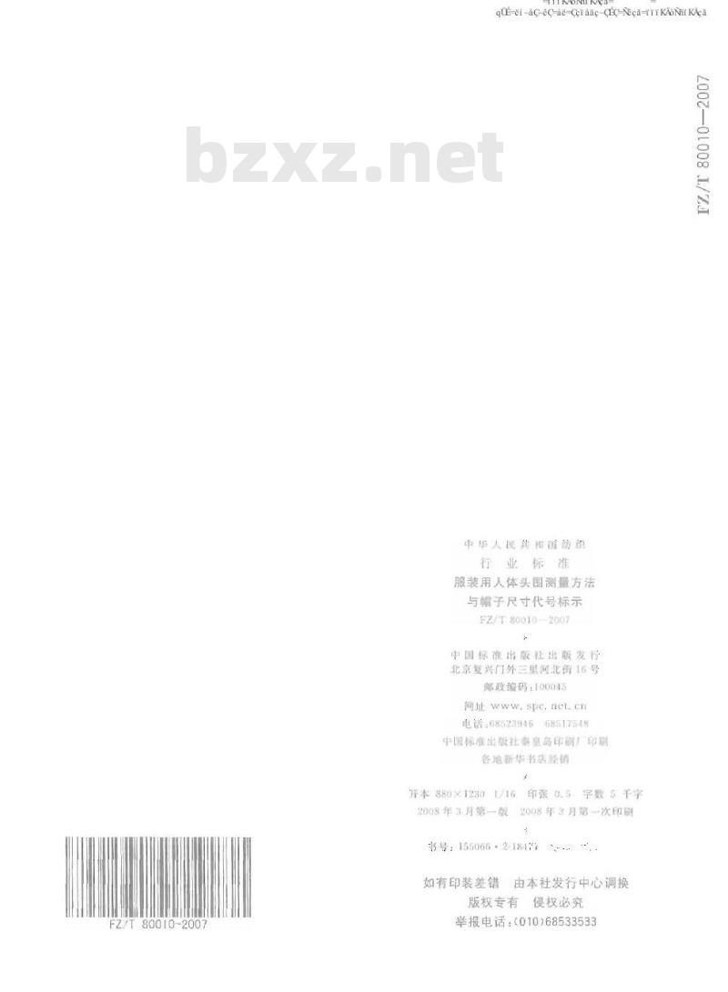 - FZ/T 80010-2007 服装用人体头围测量方法与帽子尺寸代号标示