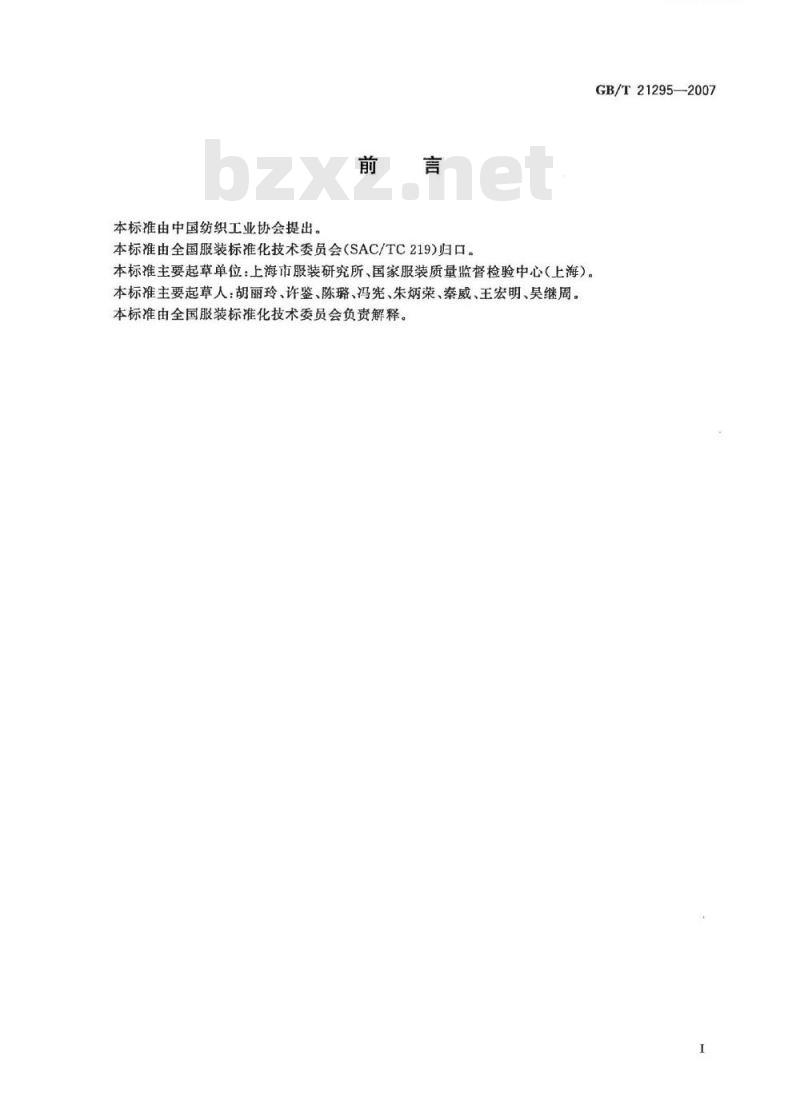 本标准由全国服装标准化技术委员会(SAC/TC219)归口。本标准主要起草单位:上海市服装研究所、国家服装质量监督检验中心(上海)。本标准主要起草人:胡丽玲、许鉴、陈璐、冯宪、朱炳荣、秦威、王宏明、吴继周。本标准由全国服装标准化技术委员会负责解释。rKAoNiKAca