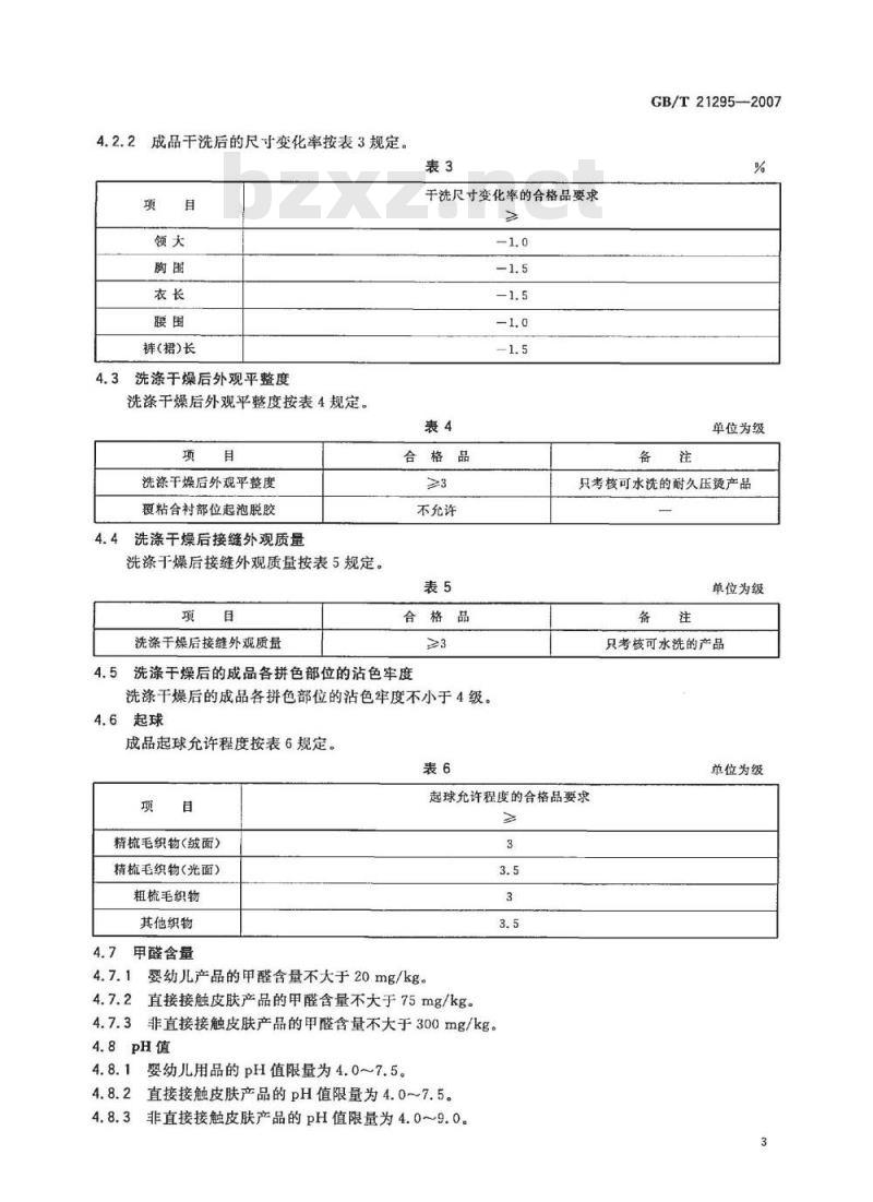 4.7.1婴幼儿产品的甲醛含量不大于20mg/kg。GB/T21295—2007