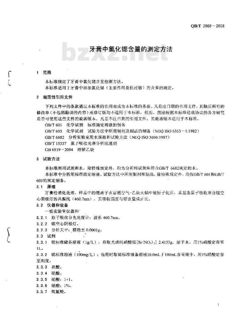 本标推规定了牙将中氯化锶含量检测方法。本标准适用丁牙中添加氯化锶(主要作用是抗过敏)的含軍的测定。2规范性引用文件
