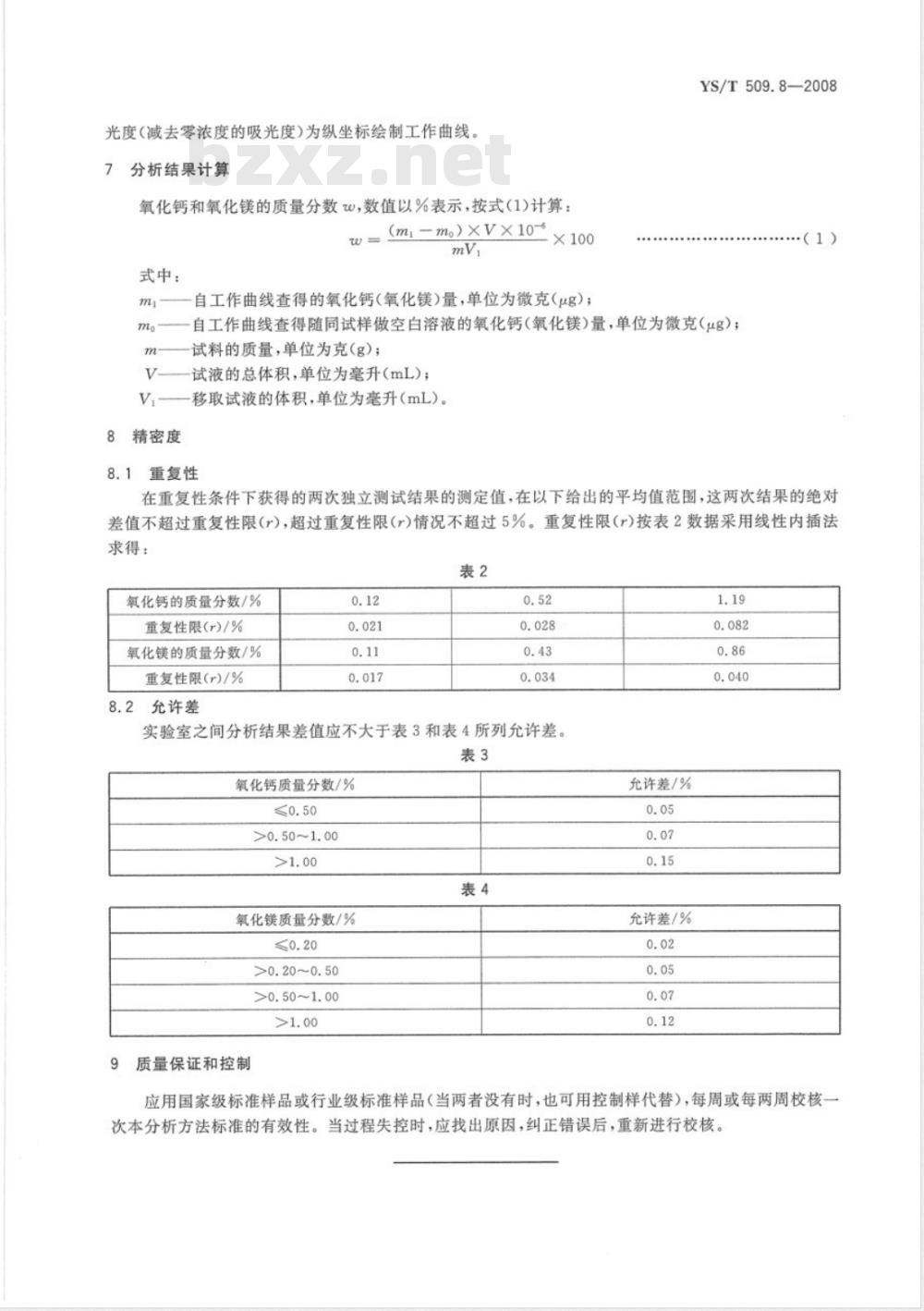 自工作曲线查得的氧化钙(氧化镁)量,单位为微克(μg);YS/T509.8—2008