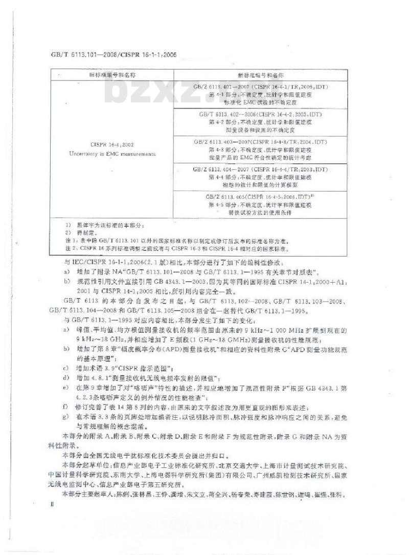 GB/26113,401-2007(CISPR16-4-1/TR:2005.IDT)第4-1部分;不碘定度、统计学和限值廷核标准化 EMC试验的不确定度