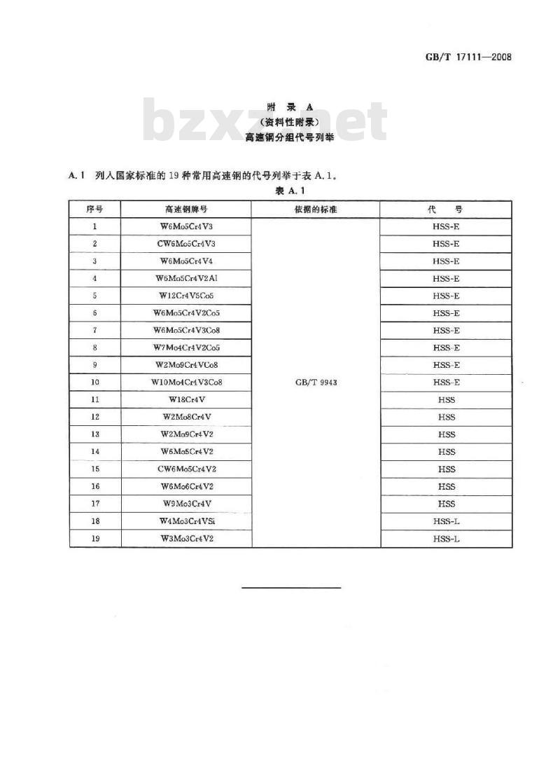 列入国家标准的19种常用高速钢的代号列举于表A,1表A.1