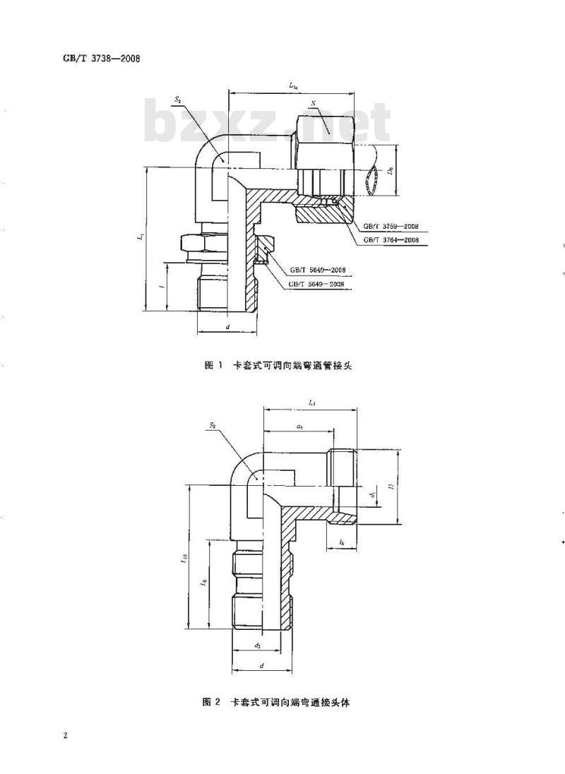 - GB/T 3738-2008 卡套式可调向端弯通管接头