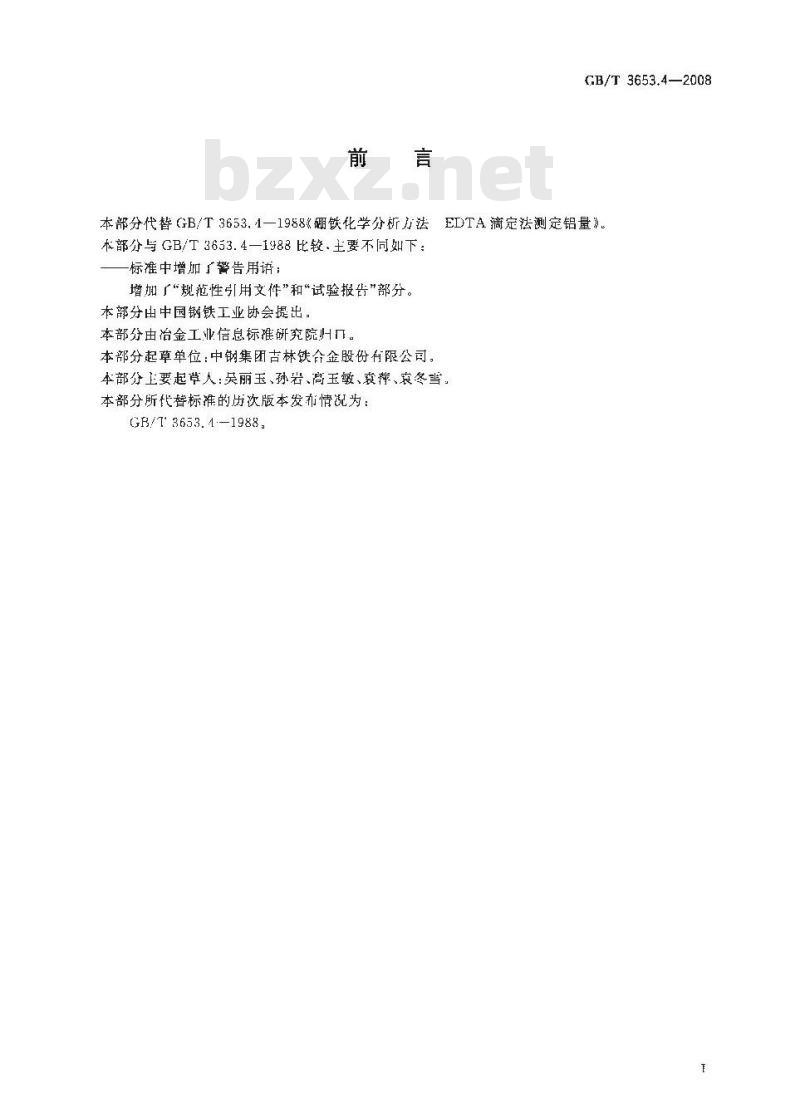 本部分代替GB/T3653.4—1988%硼铁化学分析方法EDTA滴定法测定铝量”。部分与GB/T3653.4一1988比较·主要不同如下:标准中增加广警告用语: