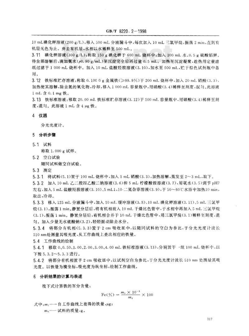 - GB/T 8220.2-1998 铋化学分析方法 1,10-二氮杂菲分光光度法测定铁量
