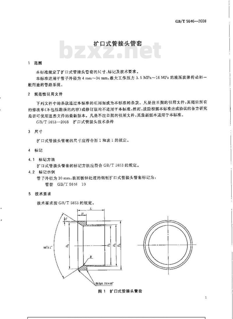 扩口式管接头管套的尺寸应符合图1和表1的规定。4标记