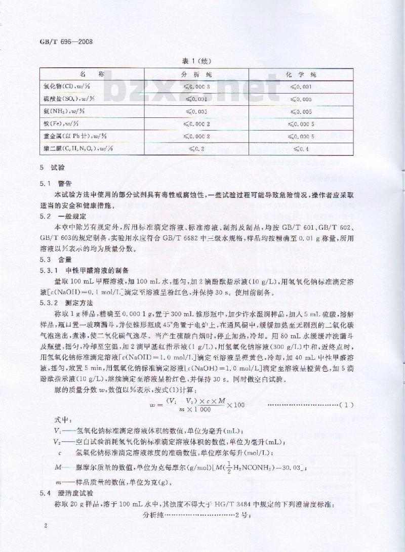 - GB/T 696-2008 化学试剂 脲(尿素)