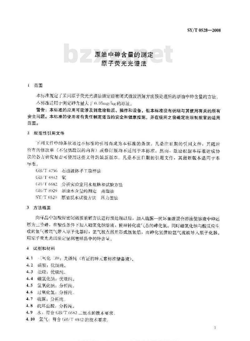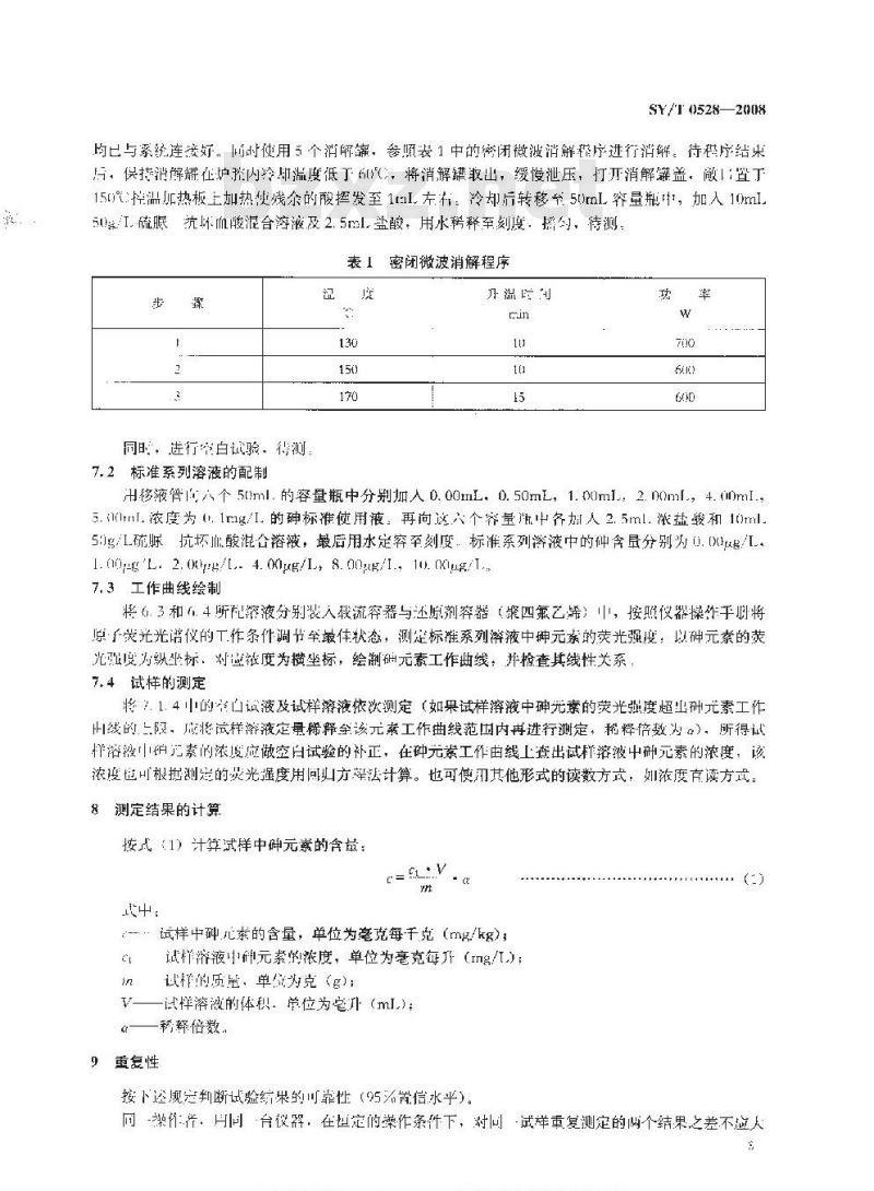 - SY/T 0528-2008 原油中砷含量的测定 原子荧光光谱法