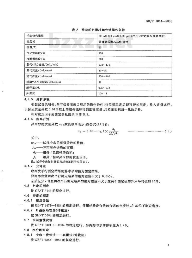 B.3.1.1异丙醇:质量分数大于99.9%;GB/T7814--2008