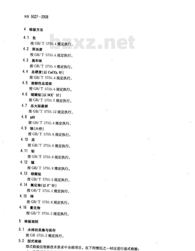- NY 5027-2008 无公害食品 畜禽饮用水水质