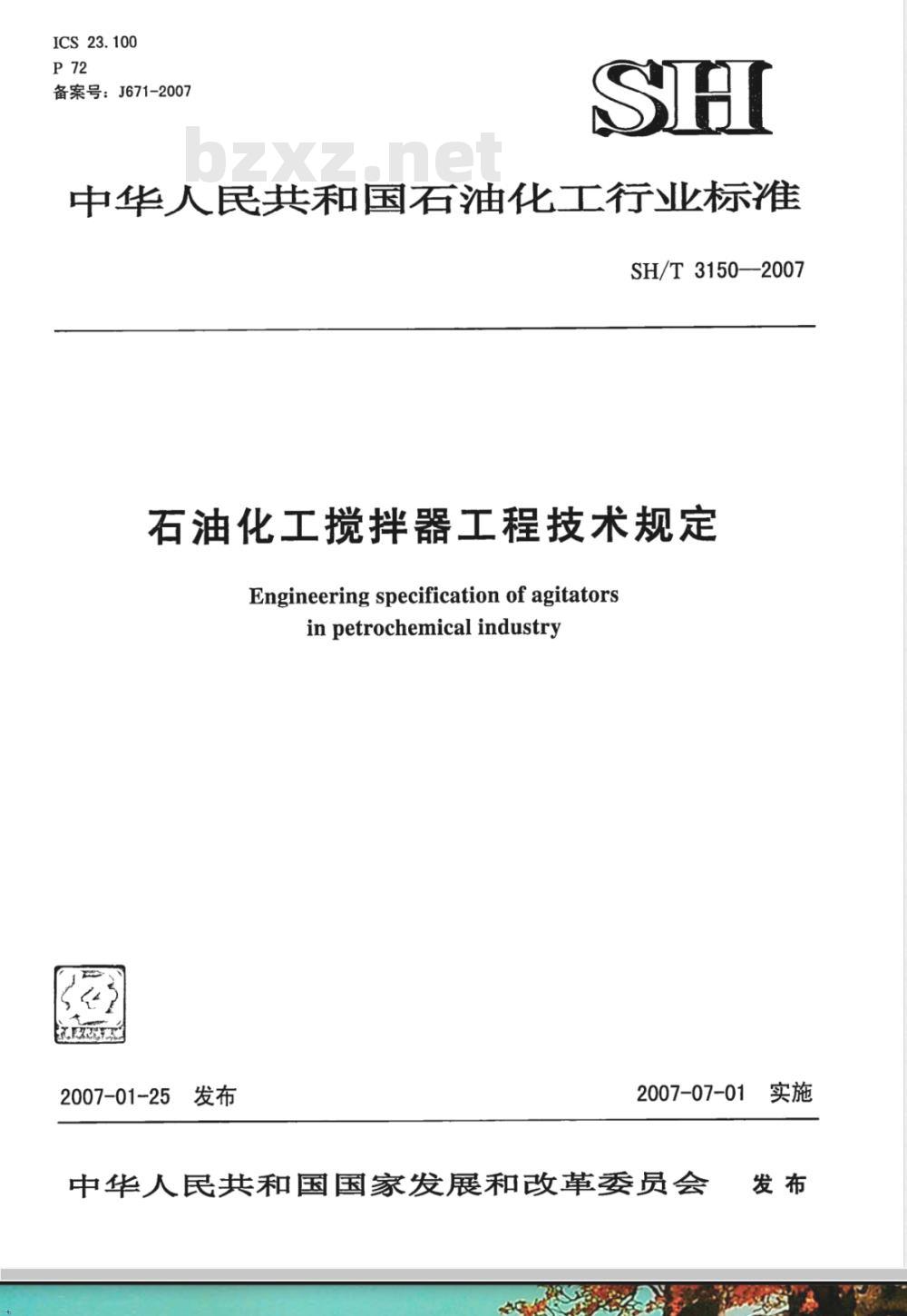 - SH/T 3150-2007 石油化工搅拌器工程技术规定