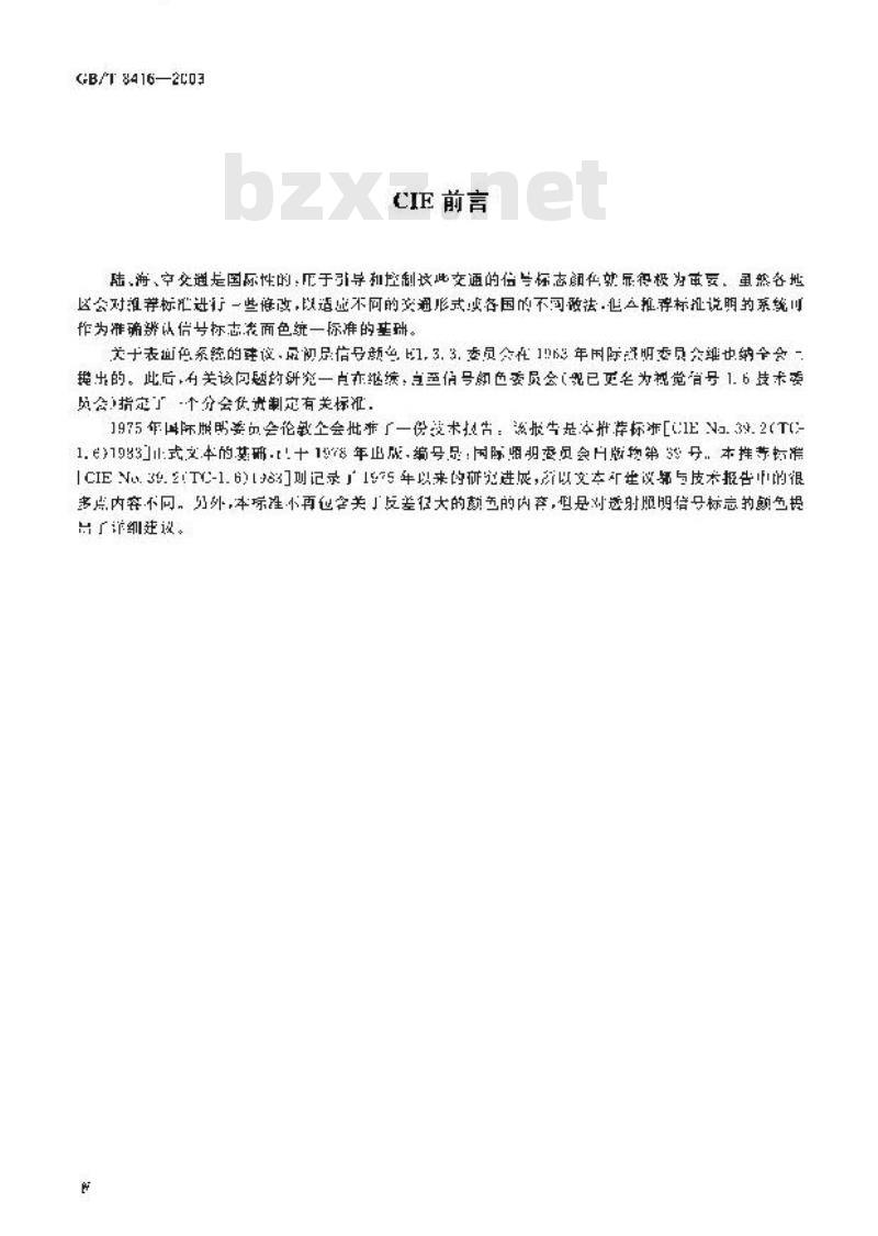 中标注参照采用层际照委员会CIENo.23.2TC:1.)关十谢信号表色的推荐标带?本坏推危对GB/T316—1S874视芯信号表面色的修订.本标与B/T8416—1U97相比,在找内容的表违及图示等方面作了范当调些,并增加准则、完查因数等内产木标准实施之口起,优片H!8416387