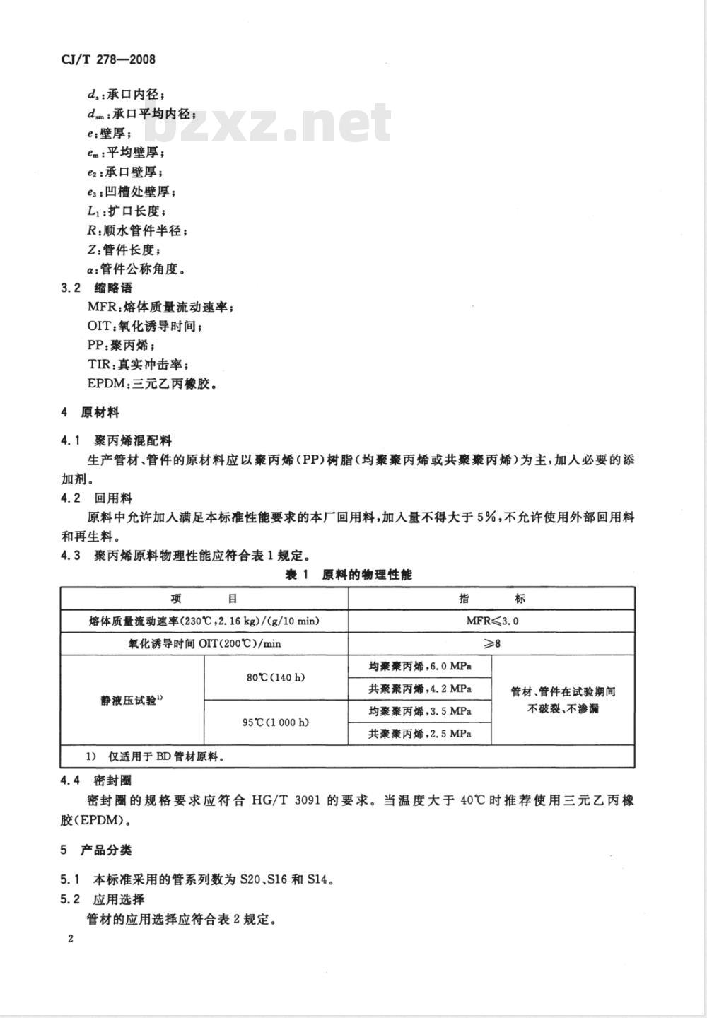 - CJ/T 278-2008 建筑排水用聚丙烯(PP)管材和管件