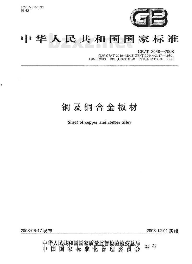 代替GB/T2040—2002.GB/T2044~2047--1980、GB/T2049--1980.GB/T2052—1980.GB/T2531—1981铜及铜合金板材