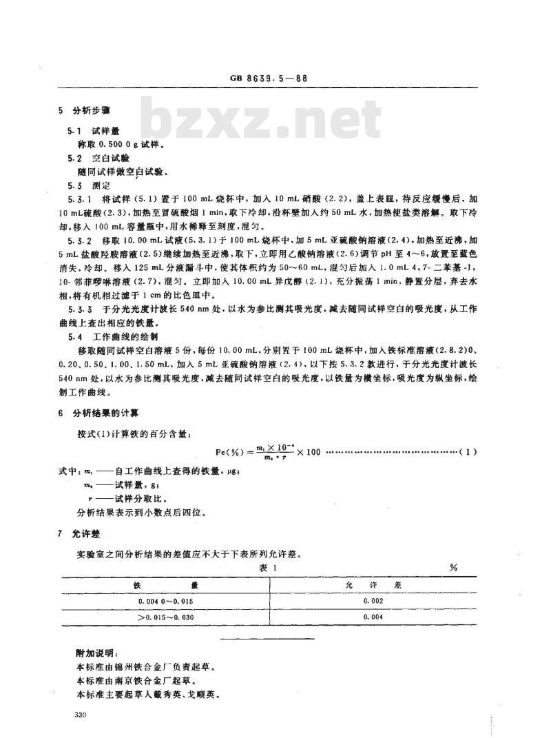 - GB/T 8639.5-1988 钒化学分析方法 异戊醇萃取光度法测定铁量