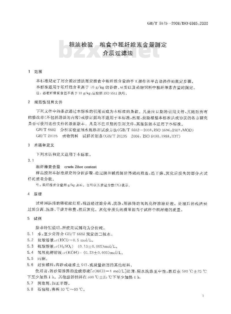 - GB/T 5515-2008 粮油检验 粮食中粗纤维素含量测定 介质过滤法