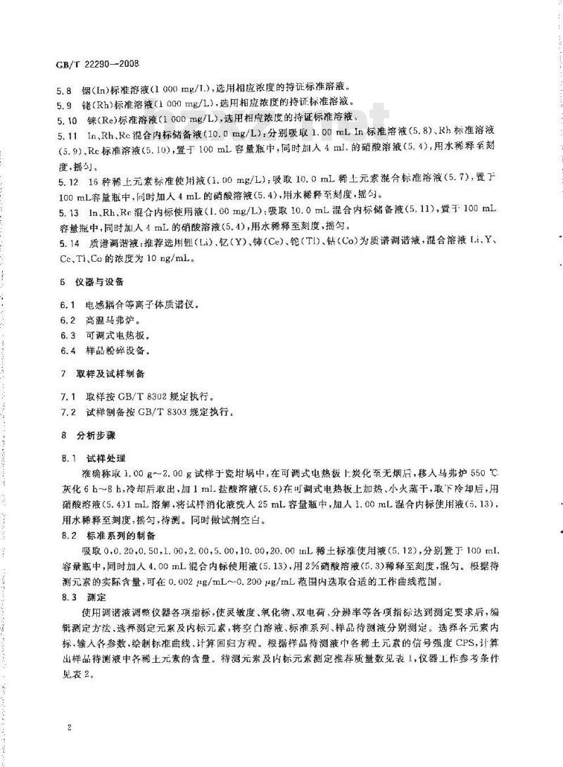 - GB/T 22290-2008 茶叶中稀土元素的测定 电感耦合等离子体质谱法