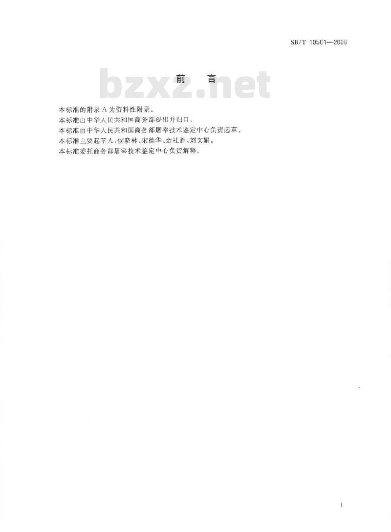 本标准由中华人民共和国商务部提出并归口。本标准由中华人民共和国商务部屠宰技术鉴定中心负责起草。本标准主要起草人:侯晓林、宋德华、金社胜、刘文娟。本标准委托商务部居宰技术鉴定中心负责解释。SB/T105C1—2008
