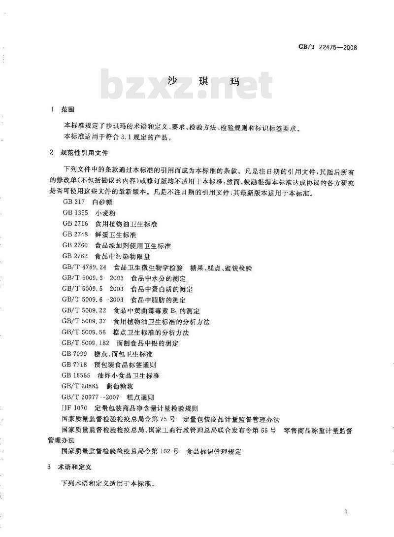 本标谁规定了沙琪玛的术语和定义、要求、检验方法、检验规则和标识标签要求。本标准适用于符介3.1规定的产品。2规范性引用文件