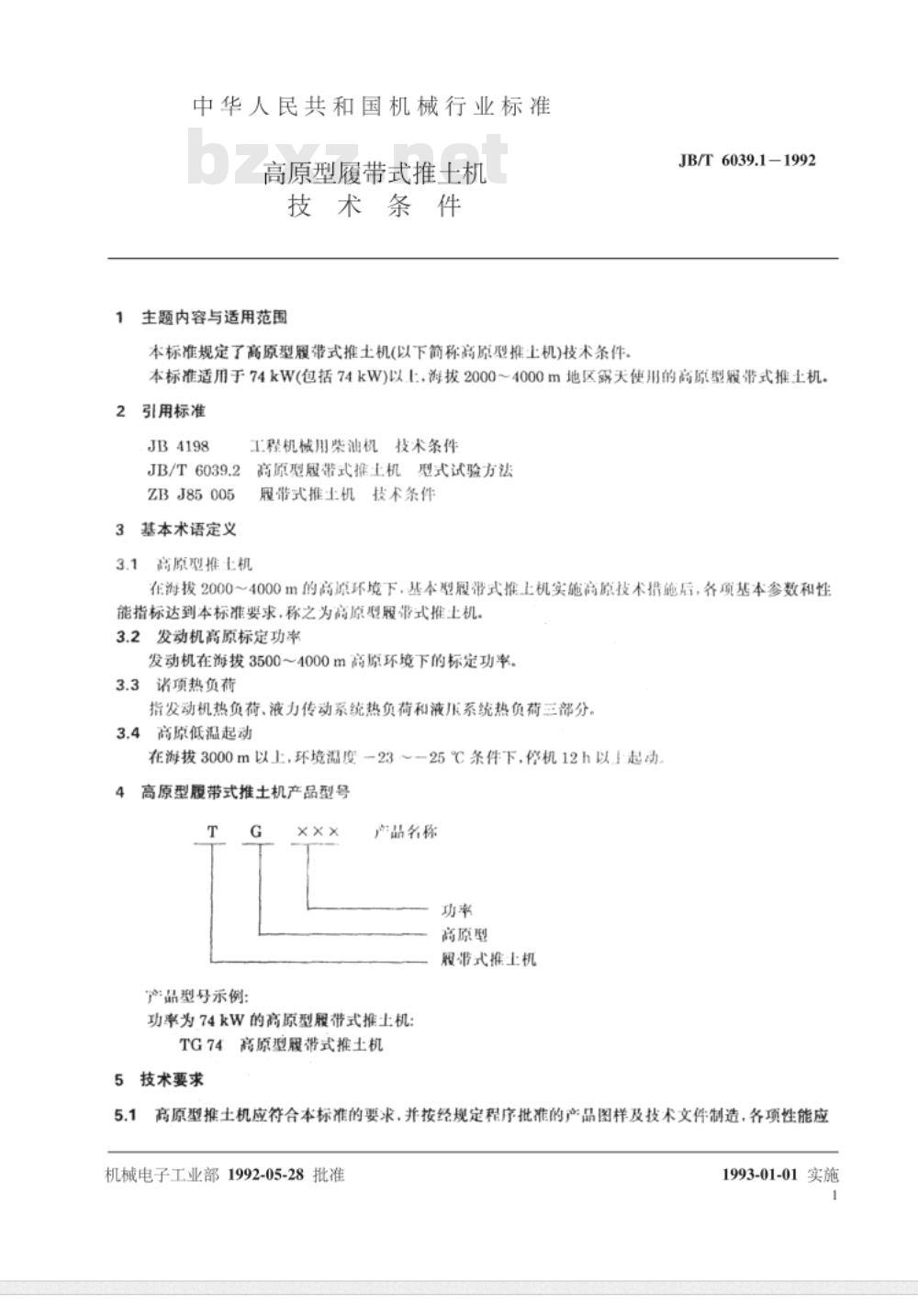 - JB/T 6039.1-1992 高原型履带式推土机 技术条件