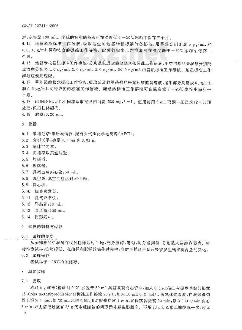- GB/T 20741-2006 畜禽肉中地塞米松残留量的测定 液相色谱-串联质谱法